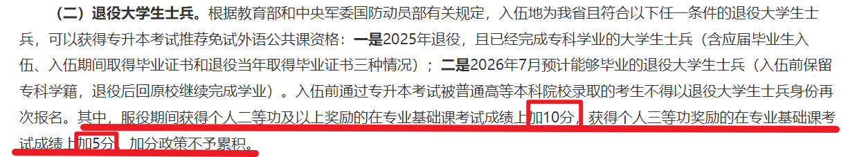 1.服役期间获得个人二等功及以上奖励的在专业基础课考试成绩上加10分