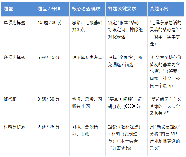 ◦ 材料分析题强制 “理论 + 本土案例” 双结合,无江西元素作答将扣 3-5 分。
