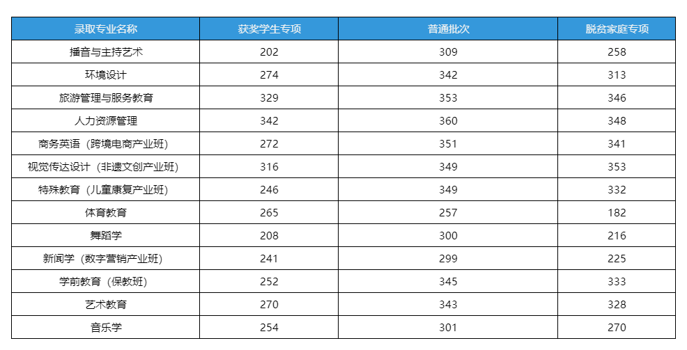 2025年江西省专升本省控线为180分,豫章师范学院各专业分批次投档最低分如下表所示: