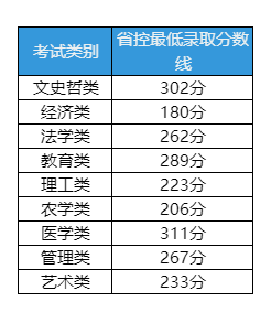 注:征集志愿录取时,各大类最低可降至180分投档录取。