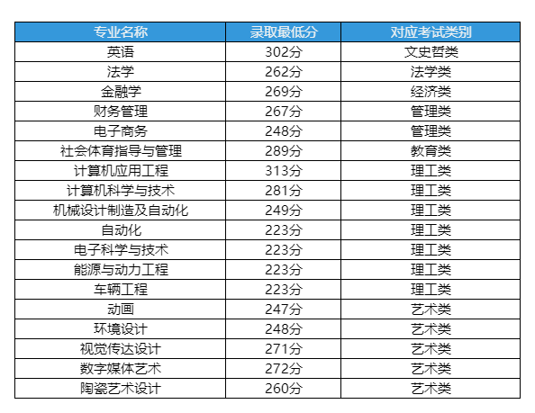 以下为景德镇艺术职业大学2025年专升本各专业普通批次投档录取最低分(数据来源于院校投档公示及权威升学平台整理):
