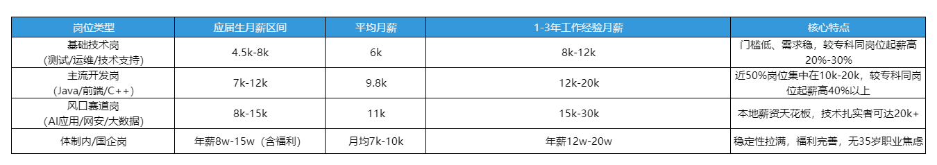 计算机科学与技术是全国通用性最强的专业,无地域就业壁垒。专升本全日制本科学历,可满足长三角、珠三角等一线城市绝大多数互联网企业、科技公司的校招门槛,应届生起薪普遍8k-18k/月,头部大厂校招年薪可达20w-40w,职业成长速度和薪资涨幅远超绝大多数行业。