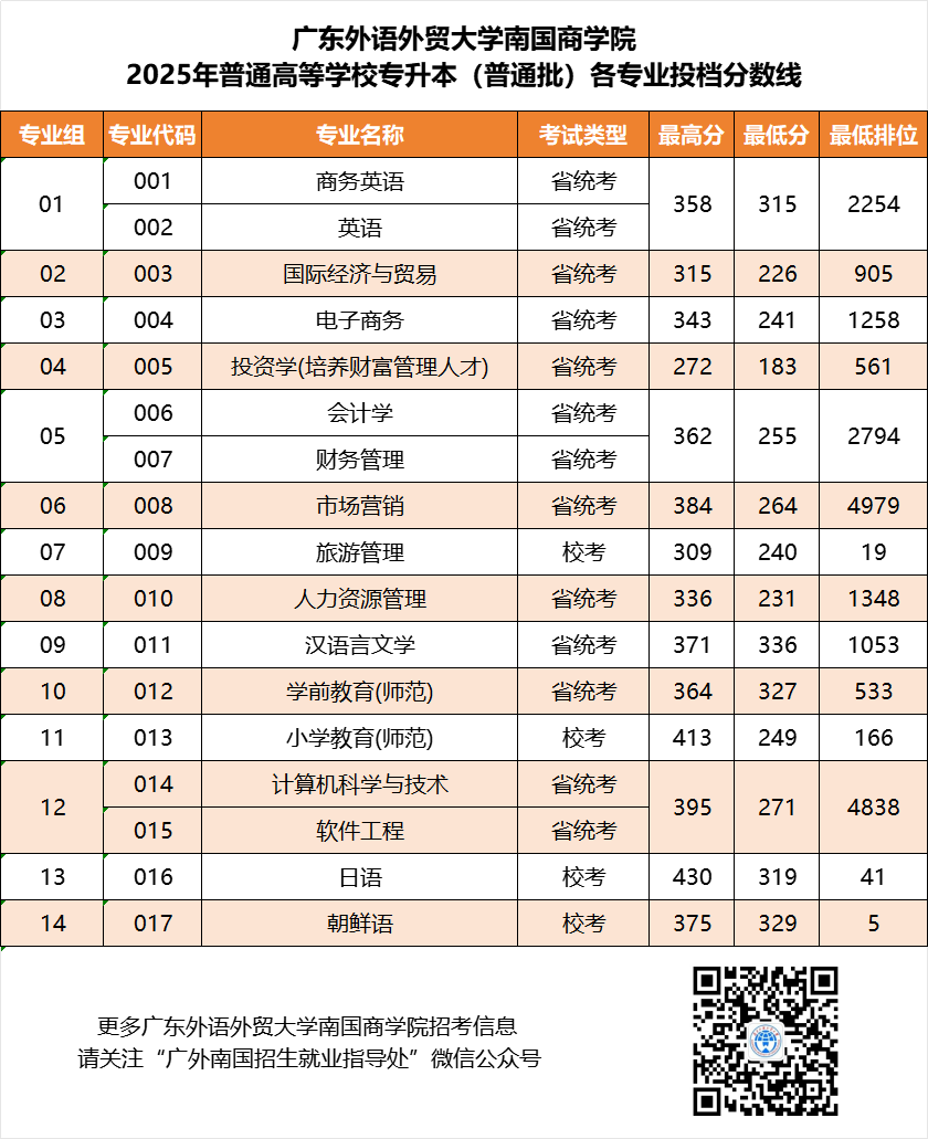 广外南国商学院2025年专升本普通批投档分数线公布!