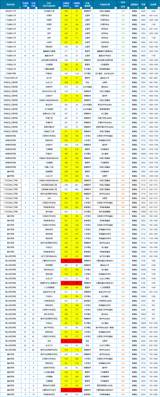 下面是2024年公办院校的最低投档分数线,标黄部分为350分以上,标红的为400分以上!