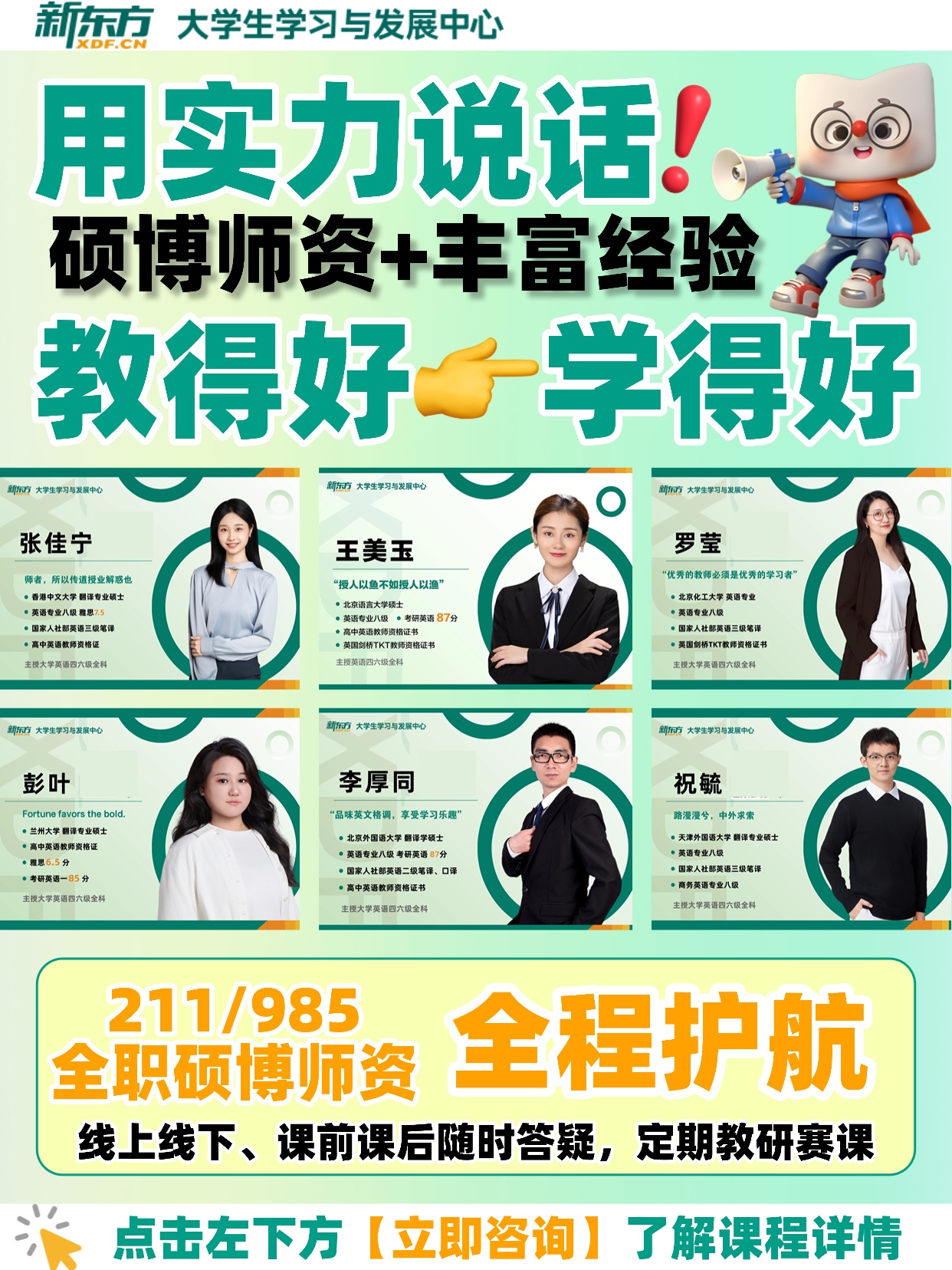 立即行动,开启你的四级突破之旅!点击右侧咨询窗口或者打开新东方四六级官网,让专业课程顾问为你量身定制备考方案。