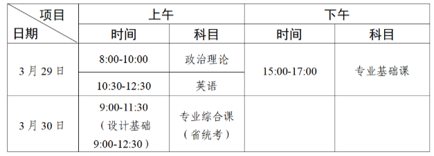 (一)2025年普通专升本考试科目共设4门,分别为2门公共课、1门专业基础课、1门专业综合课。公共课、专业基础课每科考试时间120分钟、卷面满分值100分;专业综合课每科考试时间150分钟(设计基础210分钟)、卷面满分值200分。