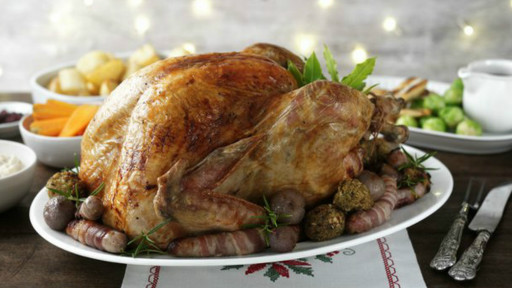 一般英国家庭喜欢自己烹调火鸡,将大量的蔬果如西芹、洋葱、栗子等,塞进火鸡肚子里,再在表层抹上多种香料,然后才放入烤箱。配菜可以考虑在超市常看到的球形甘蓝,外面涂上黄油,再配着培根,味道不错。