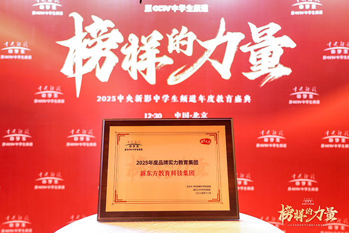 近日,“榜样的力量”2025年度教育盛典在北京举行。活动由中央新影中学生频道主办,汇聚全国教育各领域杰出代表,围绕教育数字化转型、高质量发展等核心议题展开深入交流。盛典期间举行表彰环节,新东方荣获“2025年度品牌实力教育集团”称号。这一荣誉不仅是对其过往三十二年深耕教育的肯定,更是对其在新时代积极求变、稳健发展的认可。