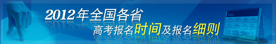| 黑龙江 | 11月7日-25日 | 所有参加2012年黑龙江省高考的考生均须按时到指定地点报名,报名有关规定详见文章页。[点击查看] |