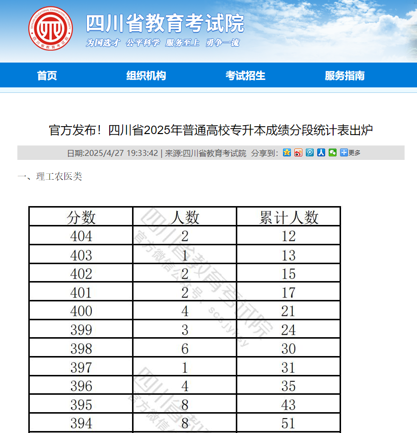 成绩分段表:考试院公布所有过了分数线的考生的成绩排名。以2025年分段表为例。