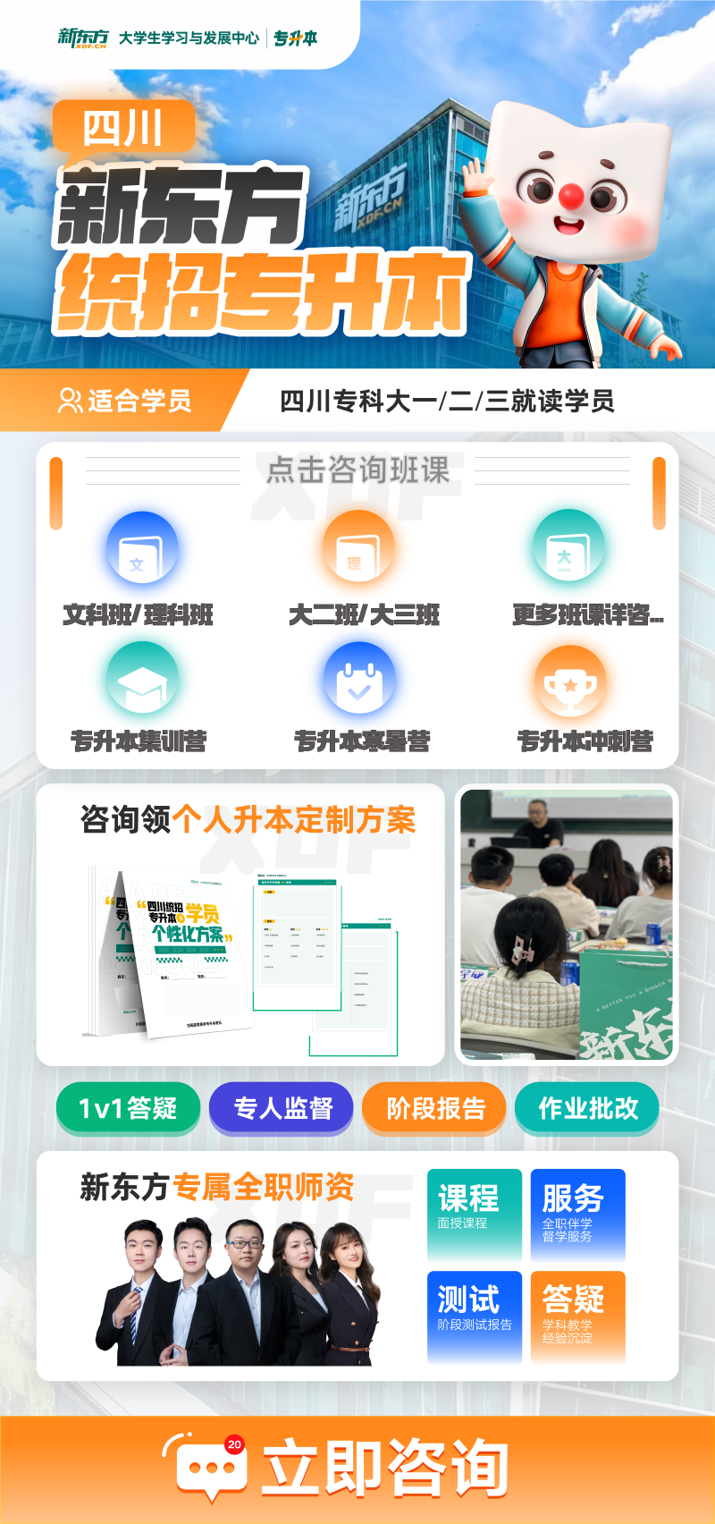 无论你是大二规划、大三冲刺,还是 0 基础、无规划的考生,成都新东方专升本都是靠谱之选!依托品牌口碑与硬核师资,搭配贴合四川考情的系统化课程,精准解决备考难点。不用费心搜集资料、纠结备考计划,这里全程为你护航!点击右下方弹窗咨询在线老师,领取个性化学习规划,解锁专属升本干货,助你高效上岸理想本科!四川新东方专升本(成都)客服微信:18613293072(加微信)