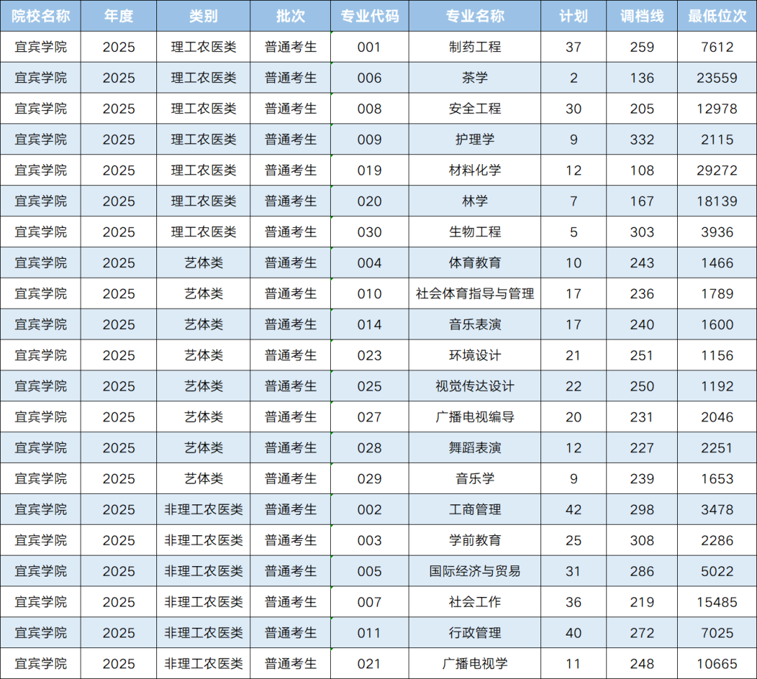 宜宾学院2025专升本共有21个专业招生,普通类招生计划358人。理工农医类:分数最高的是护理学专业332分,最低的是材料化学专业108分;非理工农医类:分数最高的是学前教育专业308分,最低的是社会工作专业219分;艺体类:分数最高的是环境设计专业251分,最低的是舞蹈表演专业227分。