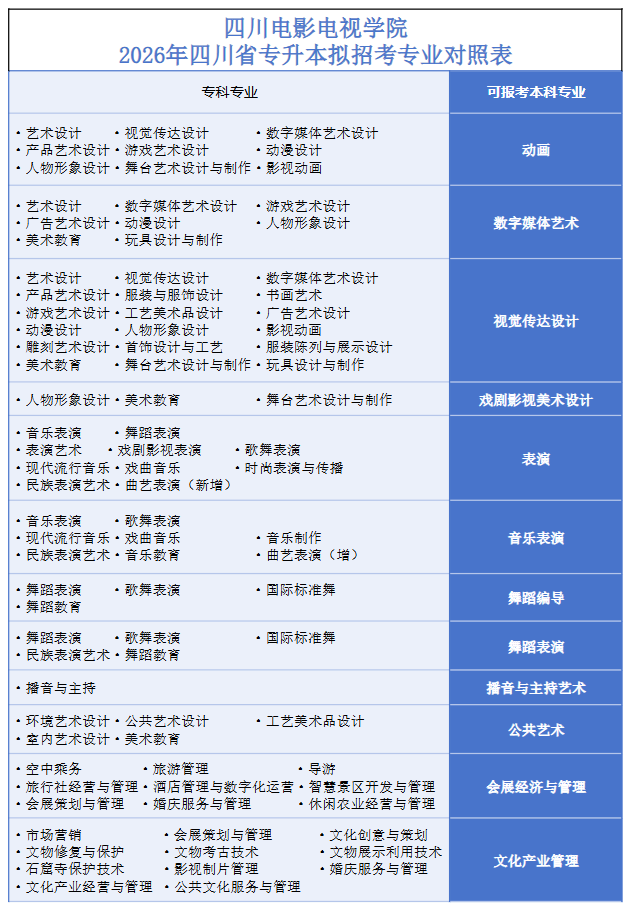 2026四川专升本又一院校发布招生专业:四川电影电视学院