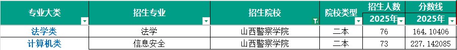 山西警察学院专升本2025年专业分数线与招生情况