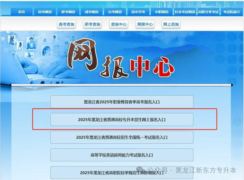 登录官方指定平台:打开电脑或手机浏览器,输入官方网址进入黑龙江省招生考试信息港,在首页核心板块中找到并点击进入“网报中心”专区,这是专升本报考及准考证打印的唯一官方入口,切勿误入非正规平台。