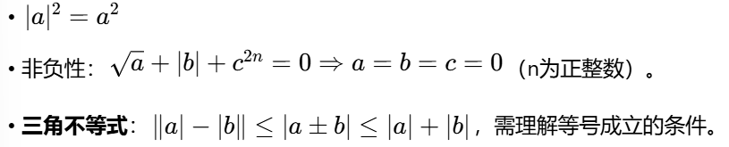 •核心:掌握绝对值的代数意义和几何意义(数轴上点到原点的距离)。