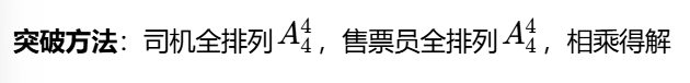 4位司机、4位售票员分配到4辆班车,每车1司机1售票员,分配方案有(D)576种