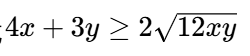 正实数x、y满足4x+3y=12,则xy的最大值为(C)3