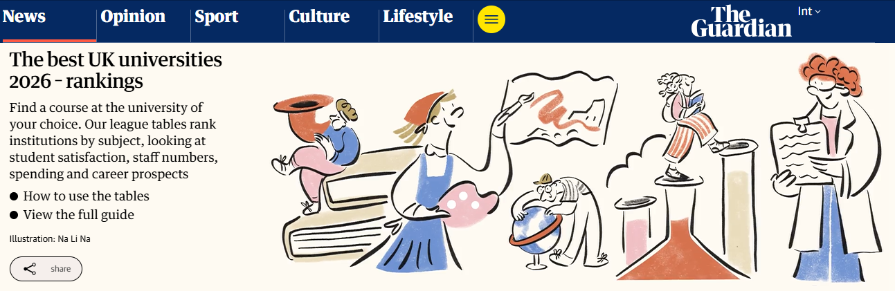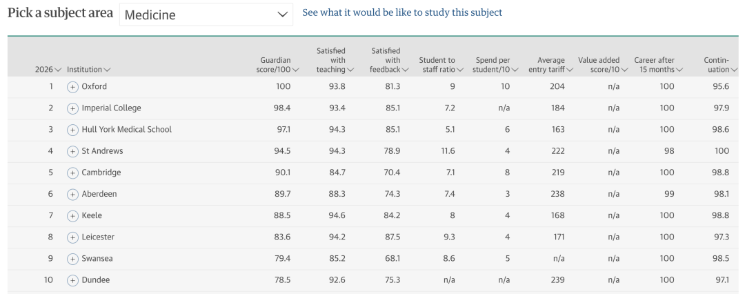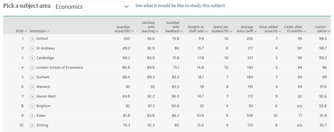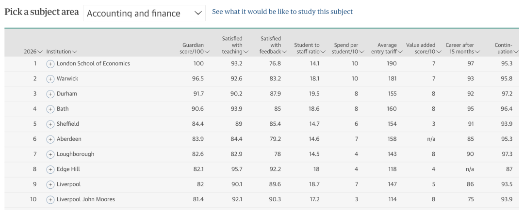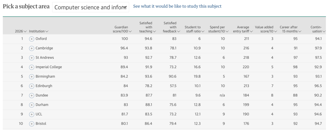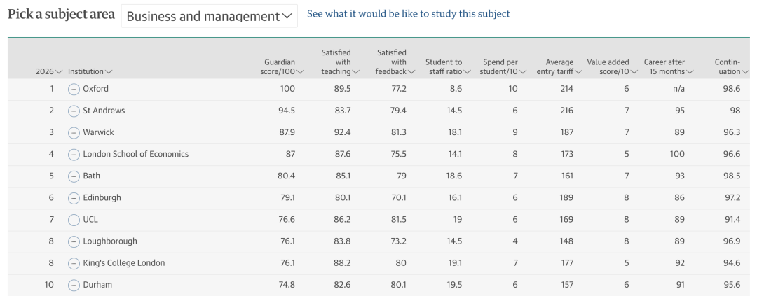 了解《卫报》2026年英国大学完整版榜单,以及各专业完整排名,可去官网查看。