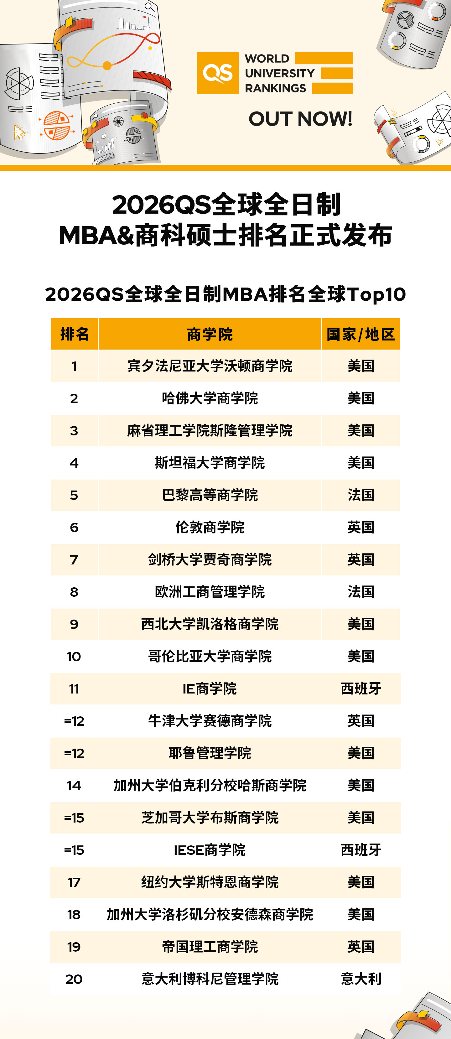 2026QS MBA&商科硕士排名公布!美国领跑,欧亚强势突围