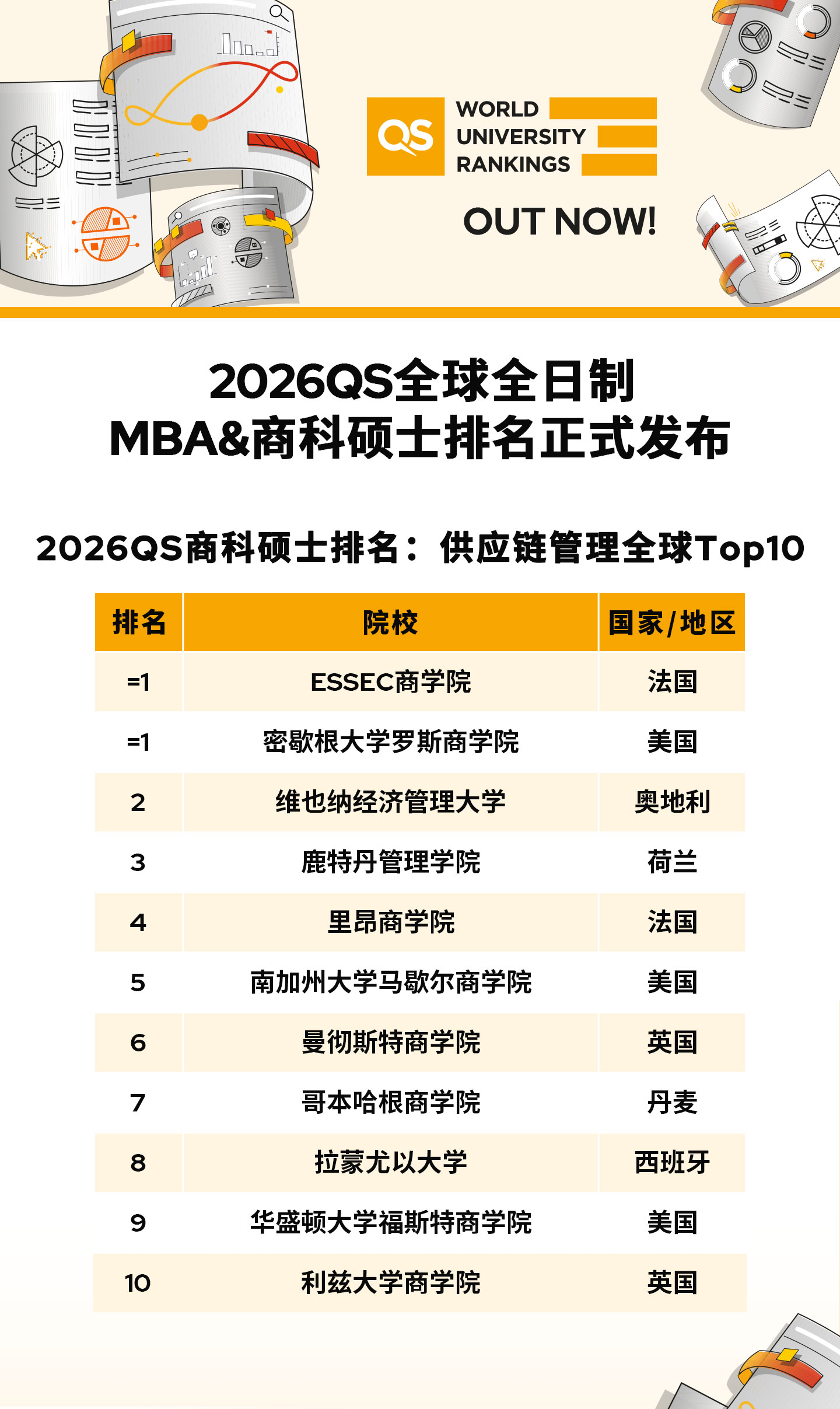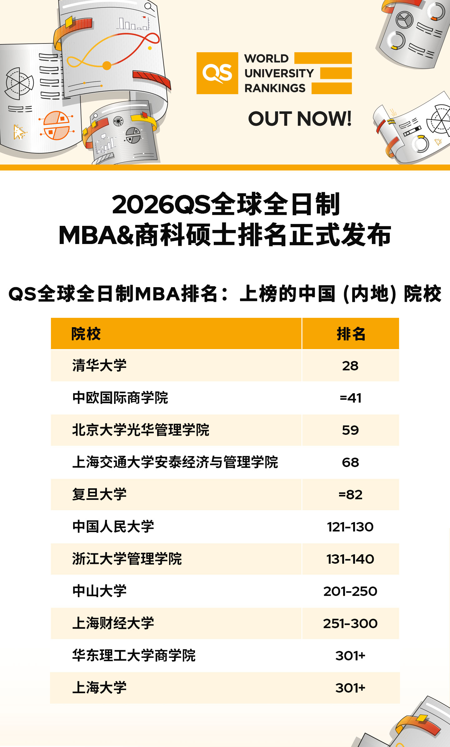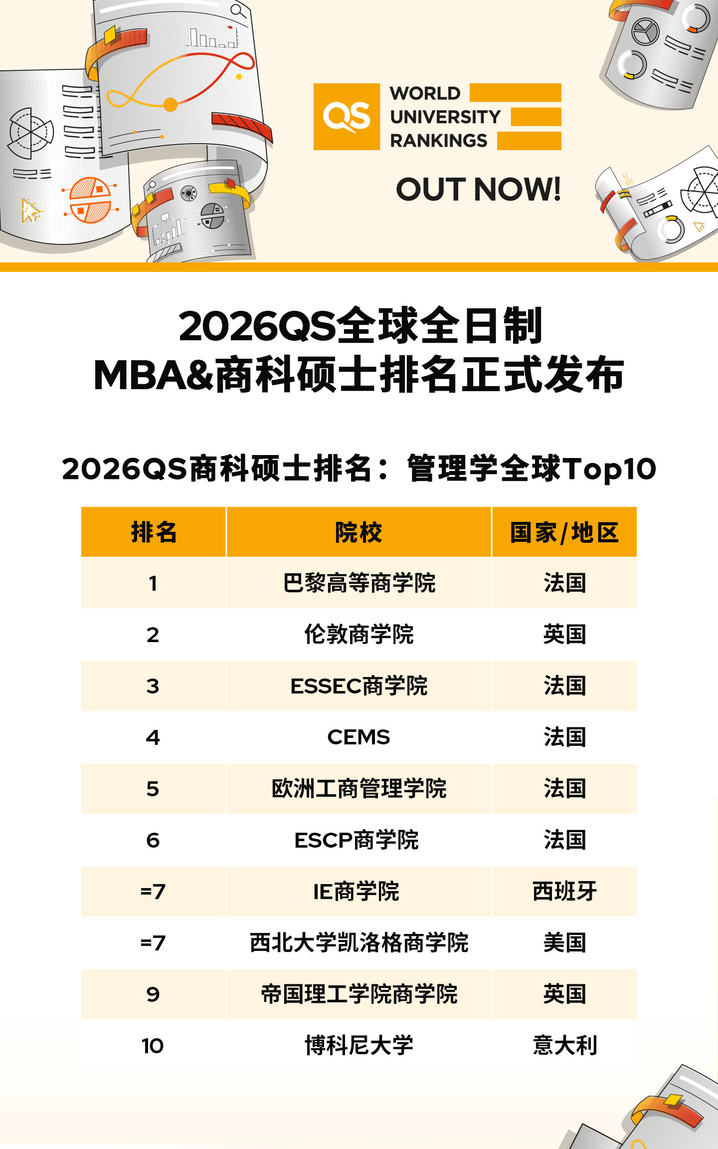 国际高等教育研究机构QS(Quacquarelli Symonds)刚刚正式发布了2026QS全球全日制MBA排名 、商科硕士排名以及在线MBA排名,为有远大理想的全球商业领导人选择留学目的地提供依据。