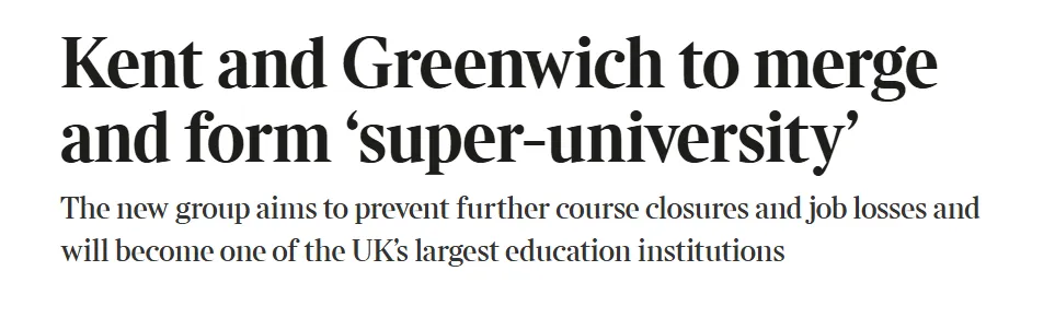 近日,英国高等教育界传来一则重大消息——肯特大学(University of Kent)与格林威治大学(University of Greenwich)将于2026年秋季正式合并,组建名为London and South East University Group(伦敦及东南大学集团) 的新高校联盟。