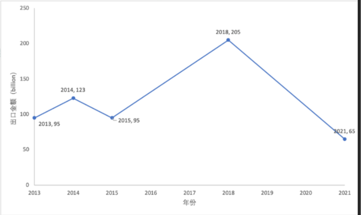 动态图表描述: "The line graph shows a fluctuating trend from 2013 to 2021."