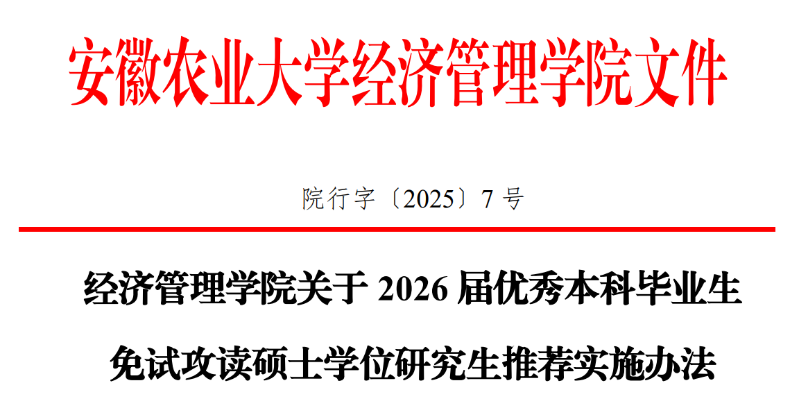 根据学校《关于做好2026年安徽农业大学推荐优秀应届本科毕业生免试攻读研究生工作的通知》要求,经济管理学院2026届毕业生推免工作已经开始。 请按照相关文件要求和规定的时间安排,提交纸质申请材料和电子表格。