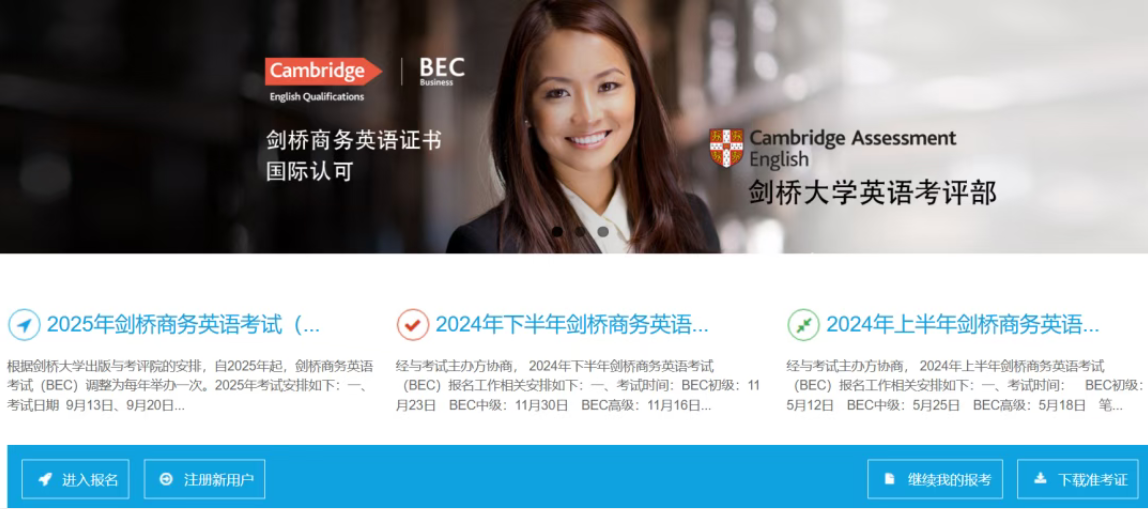 BEC商务英语(BEC Business English Certificate)是由剑桥大学考试委员会主办的国际商务英语水平考试。被誉为“外国企业的护照”。考试分为三个级别:初级、中级(Vantage)和高级(Higher)。主要测试考生在商务场合用英语沟通、交流和协作的能力。适合想进外企、提升职场竞争力的人。