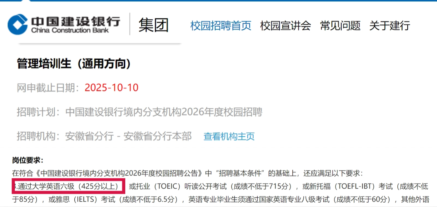 新东方带你看中国建设银行2026年度校园招聘公告——四六级证书必不可少