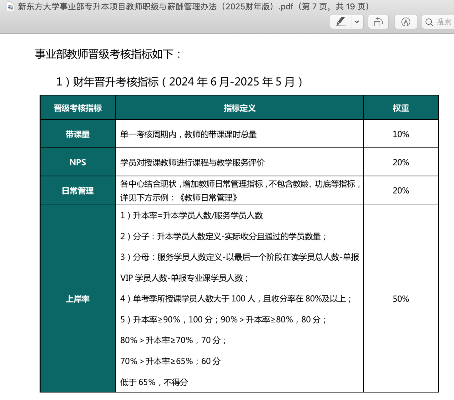 我们全职老师的绩效都是和老师的排课量(收入)、日常的功底考核,赛课成绩排名,学员满意度打分(nps)、学员模考、学员出分上岸成绩挂钩的。考核排名靠前的老师才会排更多的课,排名靠后的老师会停课不排,为每一位在读学员负责任,帮助学员出分上岸是我们最终的目标。所以你的出分对他的影响非常大,这也是其他机构没法做到的。