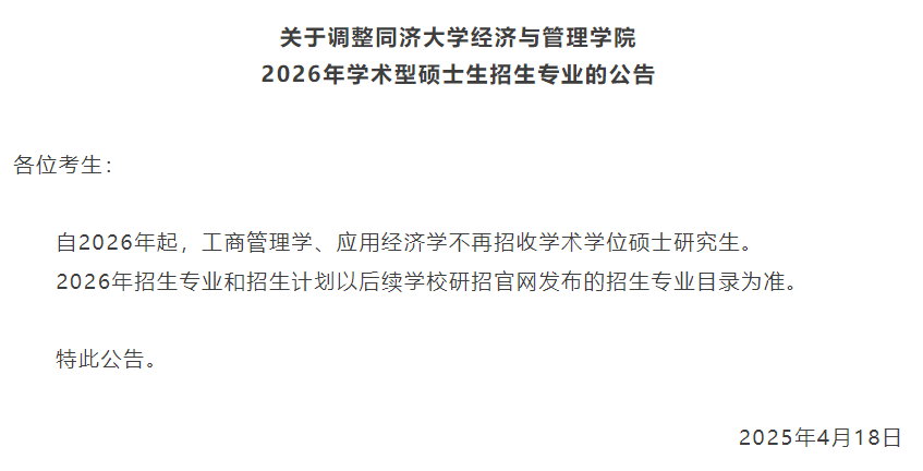 去年部分院校临考前突然改考408(计算机统考),导致考生措手不及,而今年类似调整(如西北农林科技大学 停招公告、同济大学 科目调整)均提前数月发布,减少信息差。