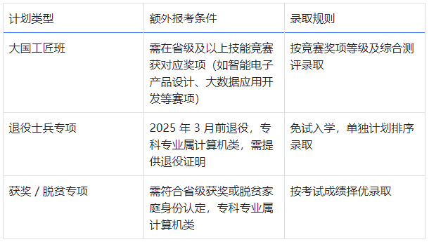 核心要求:专科专业符合上述计算机类范围,且无记过及以上纪律处分,2025 年 7 月 31 日前可取得专科毕业证;