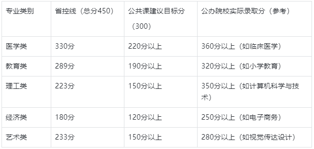 冷门专业(如艺术类):公共课总分要求较低。2025年艺术类省控线233分,公共课150分+专业课83分即可达标。