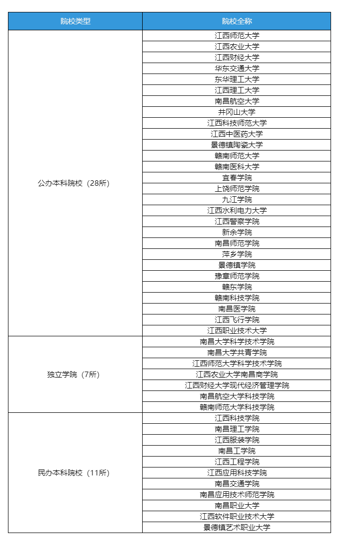 一、2026年江西专升本招生院校明细表格