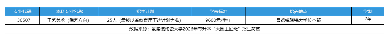 2026景德镇陶瓷大学专升本报考指南:大国工匠班招生计划及录取规则