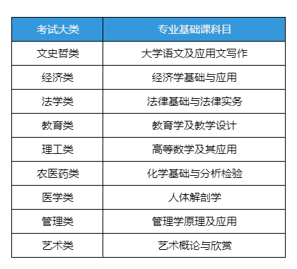 专业基础及技能知识课(满分150分,按9个考试大类分别命题):考试时长120分钟,对应类别科目如下:
