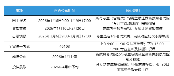 (三)2026年江西专升本关键时间节点