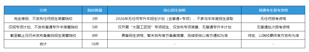 (一)2026年明确完全停招、不发布专升本招生简章的院校