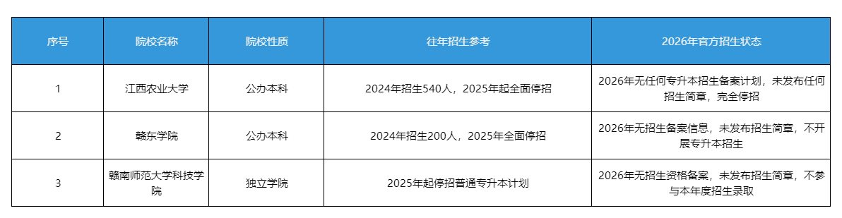2026江西统招专升本16所未发简章院校汇总 停招原因及备考建议