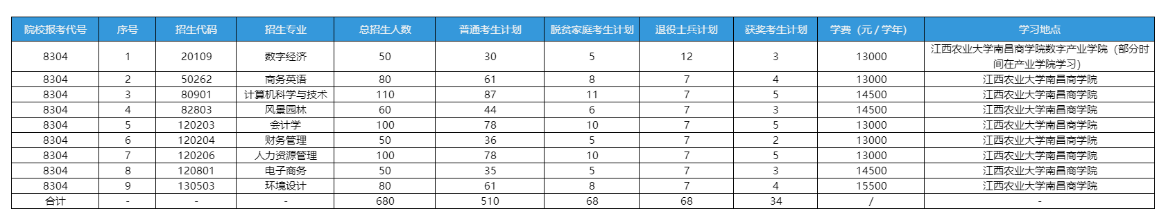 备注:最终招生数以江西省教育厅实际下达计划为准。