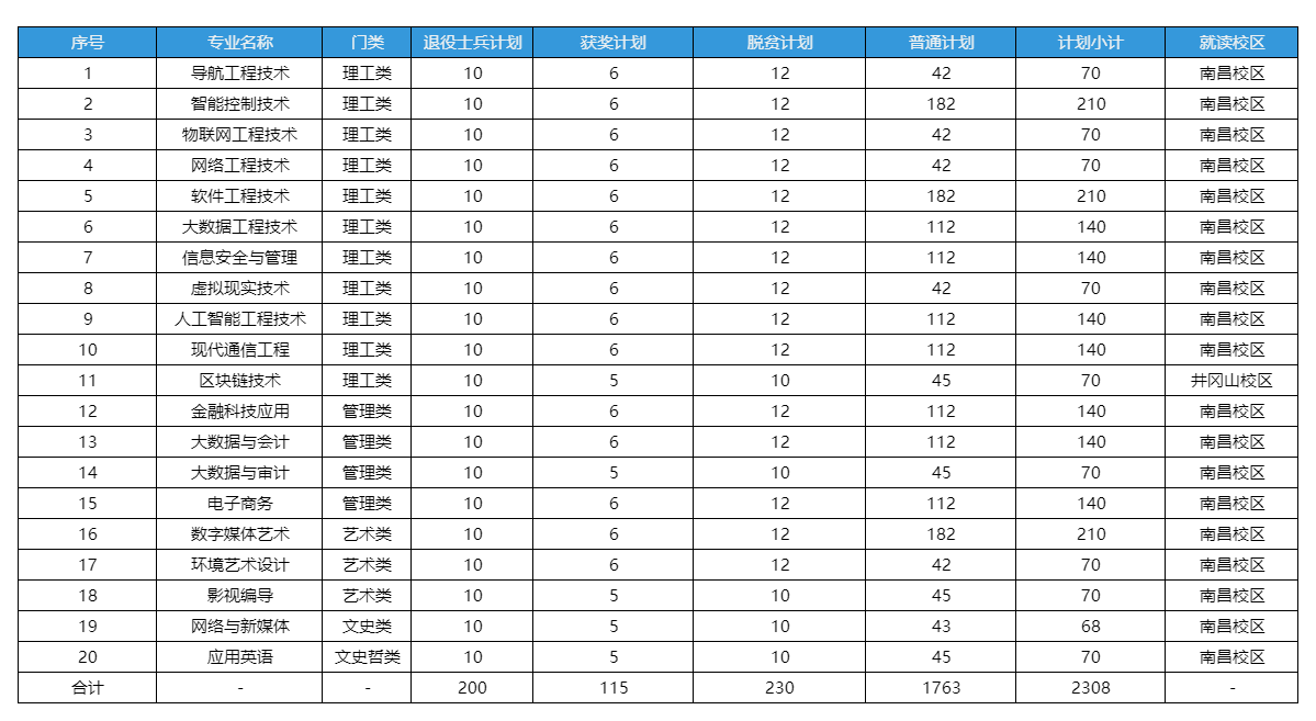 注:以上招生计划严格按照江西省教育厅下达的指标执行,学校将根据办学条件、生源状况等实际情况科学调整,最终招生计划以江西省教育考试院官方公布为准。