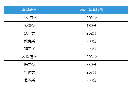 所有考生录取均不得低于对应考试大类的省控线,具体如下: