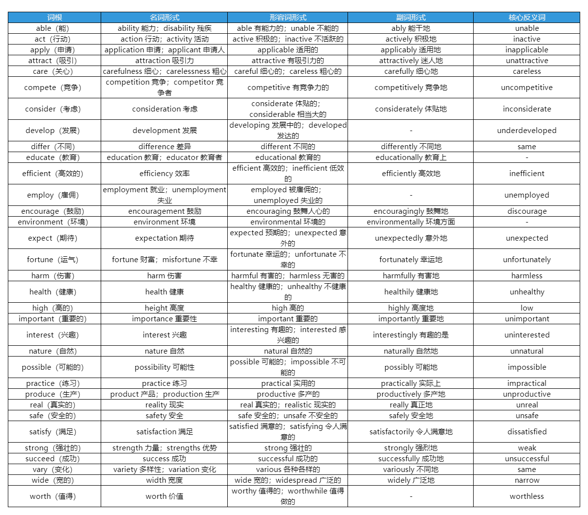 江西专升本语法单选题中,词性转换占比超 30%,同时覆盖完形、写作核心考点,下表为最高频词根变形,优先背诵。