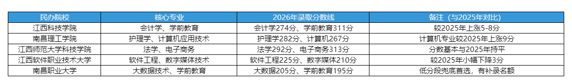 二、2026江西专升本民办院校分数线梯队汇总(含对比)