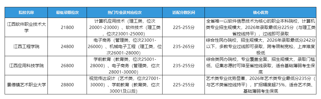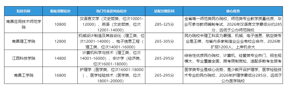 三、2026江西专升本民办院校录取位次排名(按竞争力分层)
