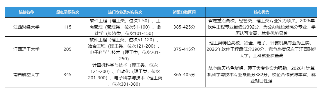 五、2026届江西专升本择校实操建议(结合位次)