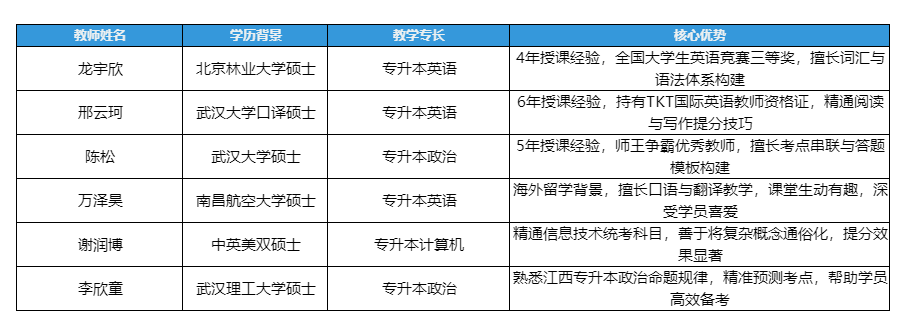 南昌新东方专升本汇聚了一批江西专升本培训领域的明星教师,以专业实力与教学热情助力学员成长: