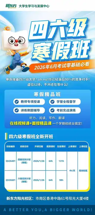 【青岛新东方四六级寒假/春季班】即将开课!