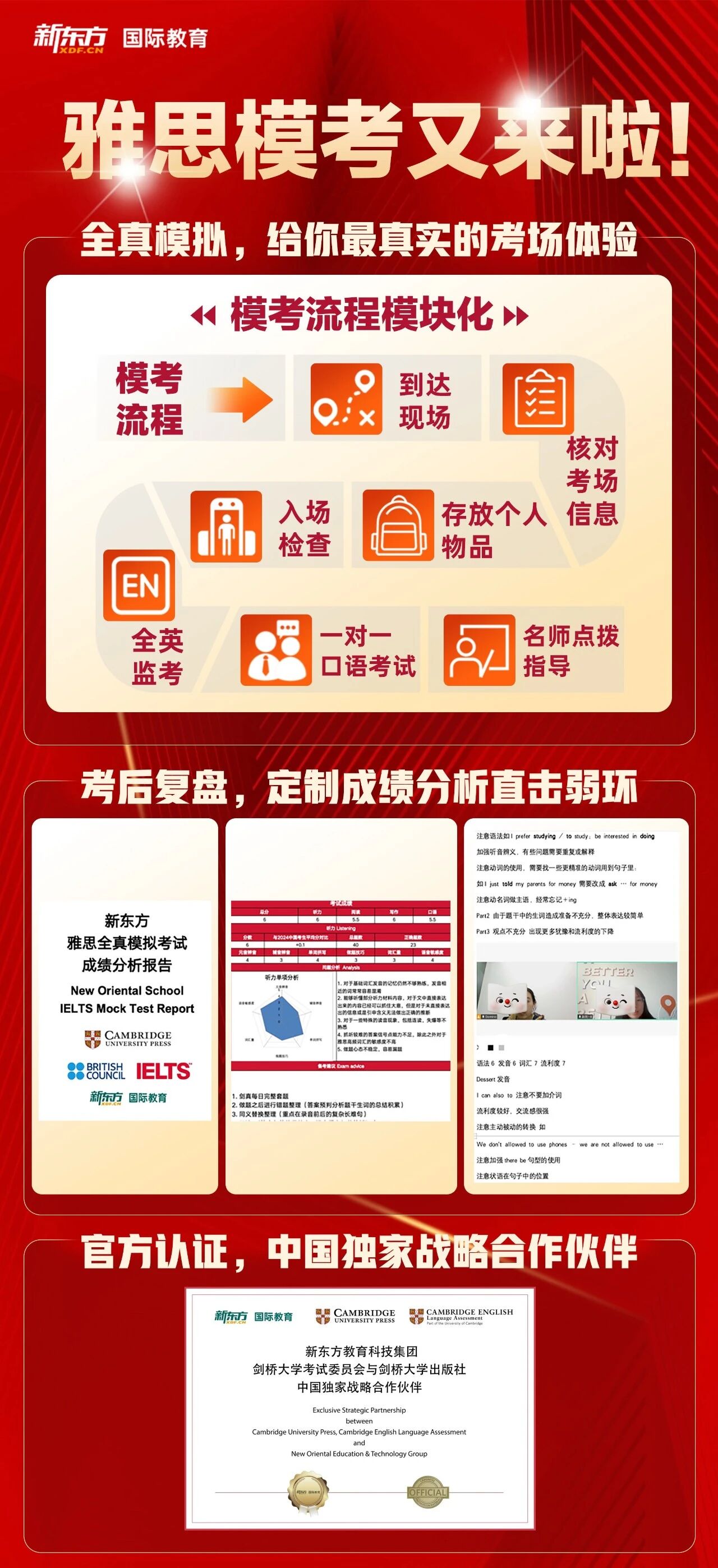 所以新东方雅思全真模考来啦,复刻真实考场,提前适应考场环境,抢先了解考试流程,一起来检验你的学习成果!